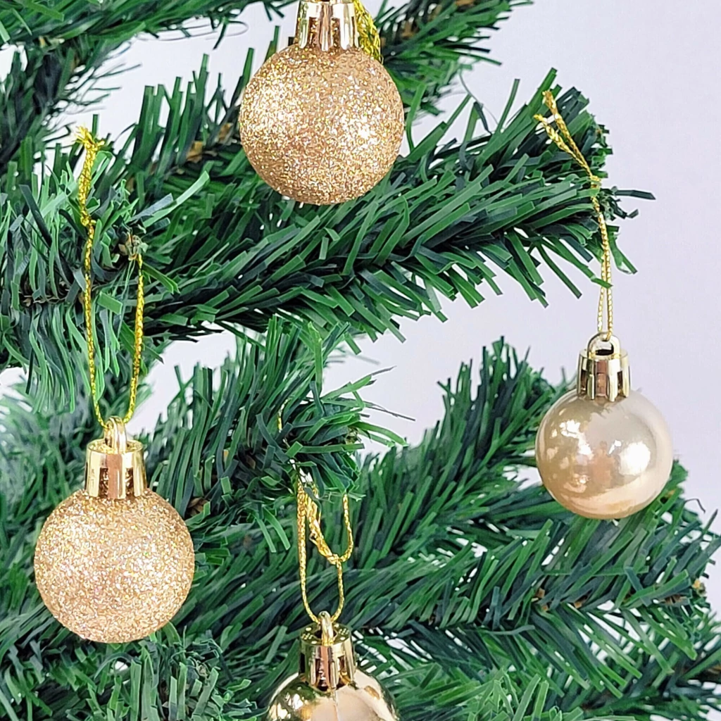 Confeccionadas em plástico, as bolas são leves e resistentes, ideais para famílias com crianças ou pets, oferecendo segurança sem comprometer o estilo. O acabamento na cor dourada traz uma sensação de riqueza e aconchego, combinando facilmente com outras cores e temas de decoração natalina. Com 3 cm de diâmetro, o tamanho é ideal para preencher espaços, criando volume e um efeito visual mais impactante e harmonioso.