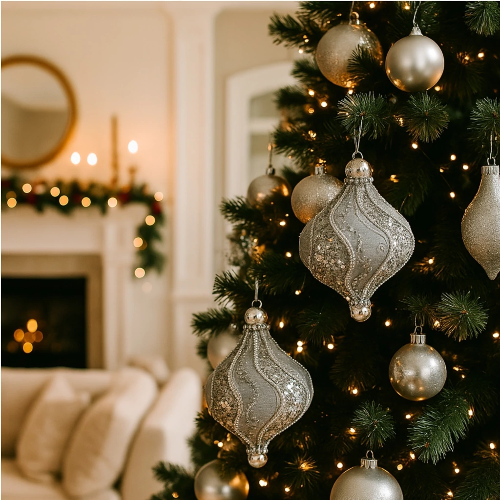 Leve sofisticação e brilho à sua decoração natalina com as Bolas de Natal Prata com Tecido e Glitter da Inigual Decor. Cada peça foi criada para encantar e transformar sua árvore, guirlanda ou arranjo em um verdadeiro cenário de elegância festiva.