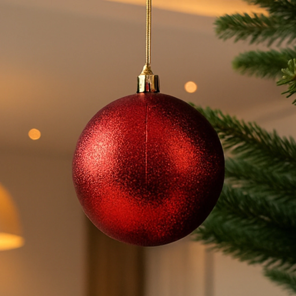 Tamanho Ideal: O diâmetro de 10 cm é perfeito para preencher espaços vazios e ser um destaque na sua árvore.