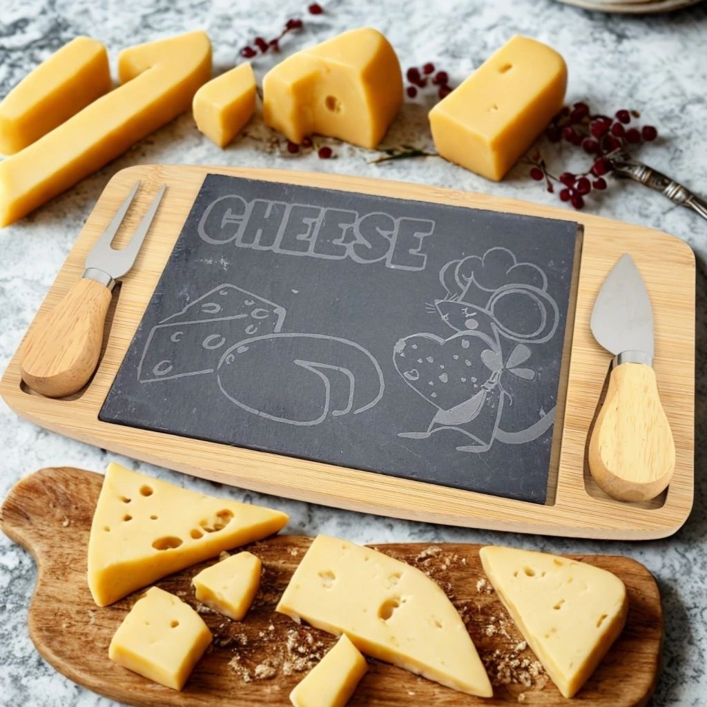 Imagine receber amigos e familiares em casa e surpreendê-los com um momento especial de degustação de queijos. Nosso conjunto de tábua e facas para queijo em pedra e bambu natural não é apenas uma ferramenta de servir, mas uma experiência por si só. Perfeito para ocasiões onde a sofisticação encontra a funcionalidade!