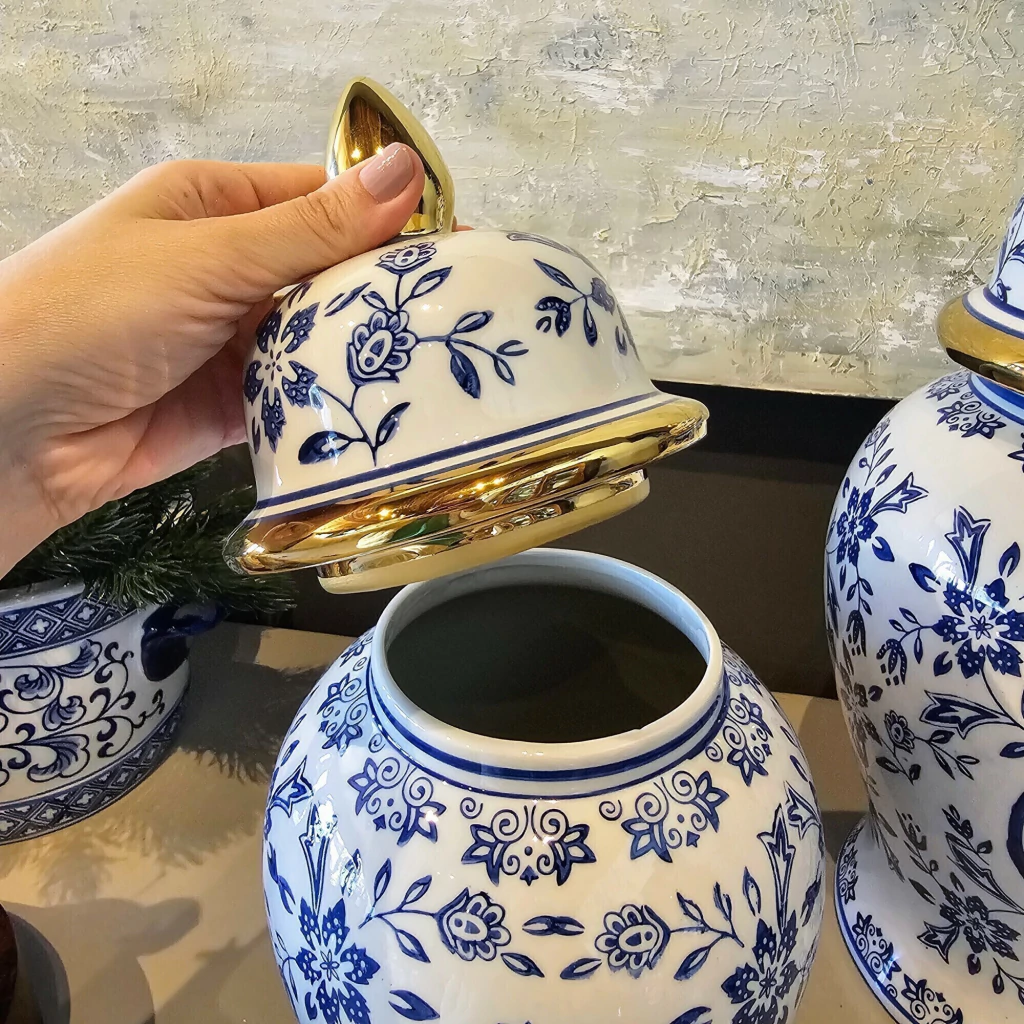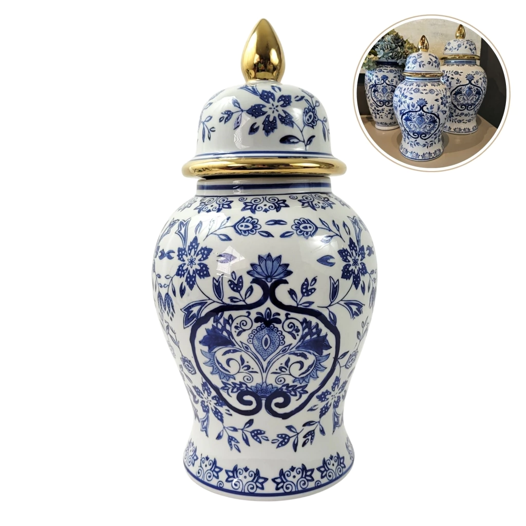 Adicione um toque de grandiosidade e elegância clássica ao seu ambiente com o Potiche de Porcelana Azul e Branco Floral da Inigual Decor. Esta peça imponente é perfeita para quem busca um item decorativo que combine a tradição da porcelana com a beleza delicada de padrões florais.