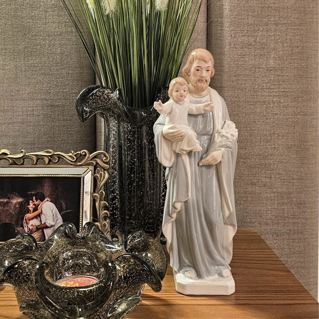 Adicione um toque de fé, proteção e carinho à sua decoração com esta Estátua de Porcelana de São José com o Menino Jesus da Inigual Decor. Esta peça é perfeita para simbolizar a paternidade, a devoção e a ternura, criando um ambiente de paz e inspiração em qualquer espaço da sua casa.