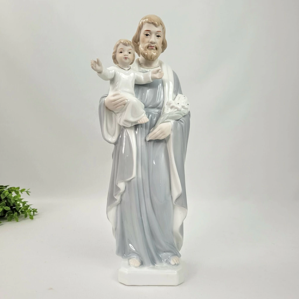 Conteúdo da Embalagem: 1 Estátua de Porcelana São José com Menino Jesus