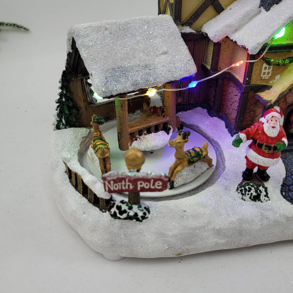 Produzido em polirresina de alta qualidade, este mini cenário natalino conta com riqueza de detalhes, iluminação em LED colorido e movimento, criando uma experiência encantadora e festiva.